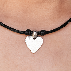 Fall in love with the effortless charm of the Eternal Braided Black Leather Necklace — a timeless design that’s both swoon-worthy and stylish. Featuring a 23mm hammered silver heart pendant, this necklace beautifully symbolizes love and connection while adding a touch of artisan shine to any look.