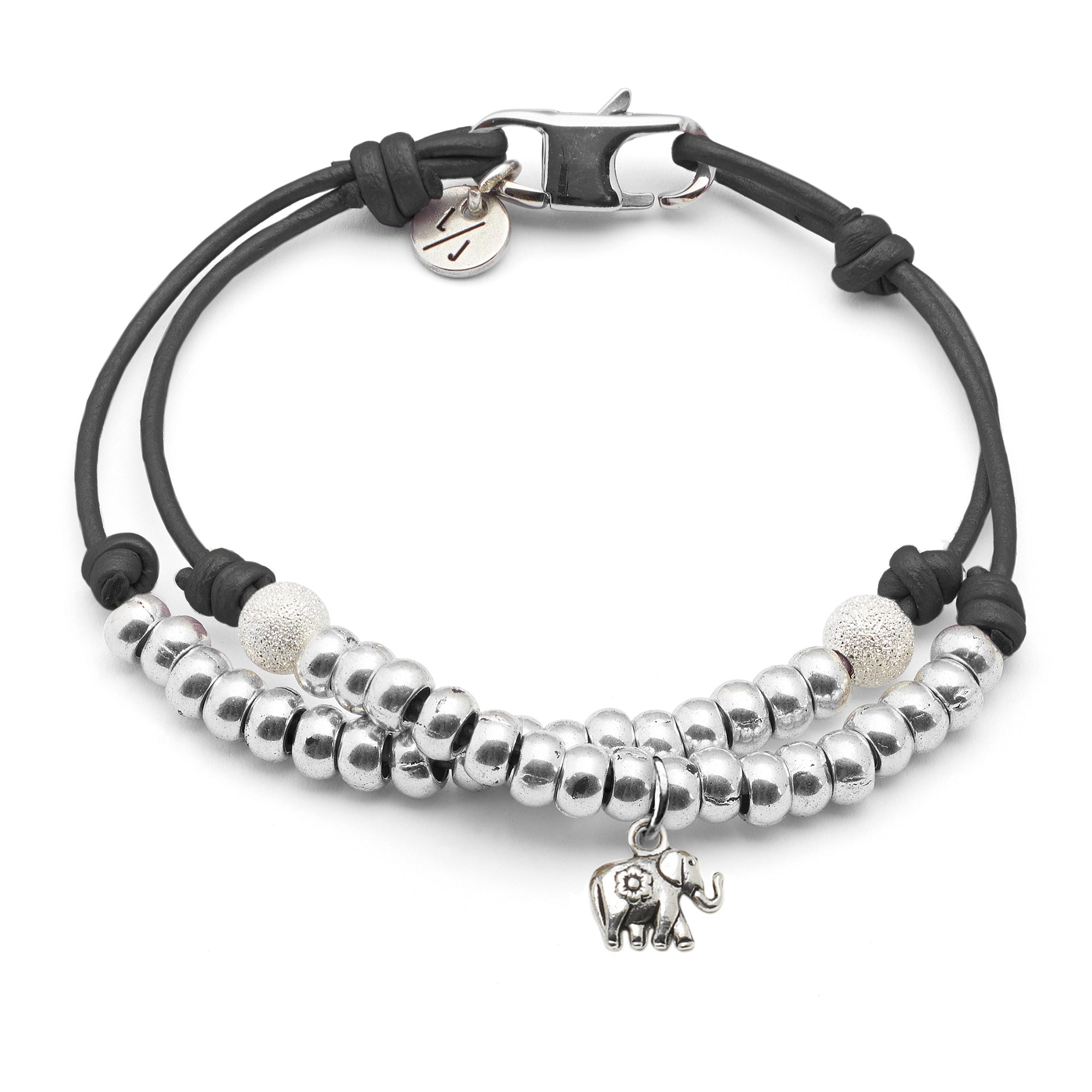 Channel effortless style and modern elegance with the Karma Black Leather & Silver Beaded Bracelet — a signature two-strand bracelet designed for layering and self-expression. Crafted with supple black leather and detailed with two rows of silver-plated beads plus frosted accent beads, this artisan-made piece blends bold texture with refined shine.