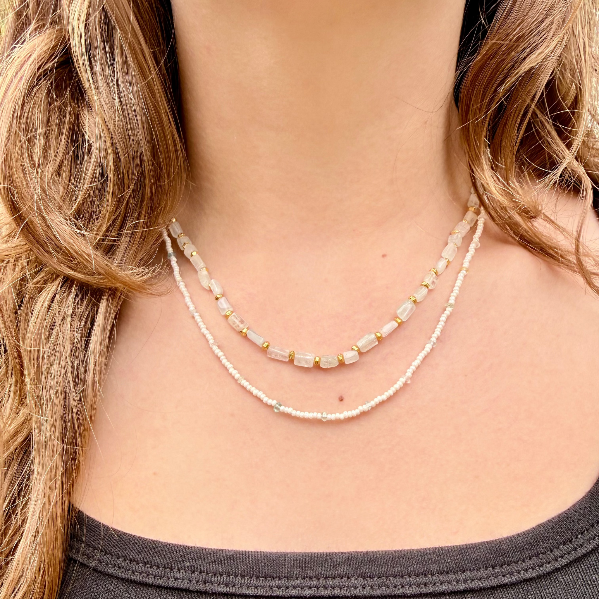 Designed to look perfectly layered with zero effort, this double-strand necklace brings gentle movement and dimension to everyday styling.