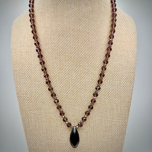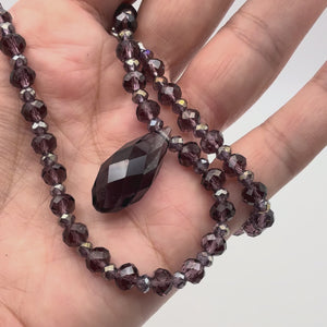 Grace meets brilliance in The Purple Raindrop Necklace. This 18 or 20-inch beauty is a celebration of Amethyst’s many facets, designed to drape perfectly at the collarbone for a look of effortless sophistication. The design features a delicate rhythm of 3mm faceted iridescent Amethyst crystal beads and 3x5mm faceted amethyst rondelles, creating a shimmering path that leads to a magnificent 25mm dark Amethyst crystal glass teardrop briolette focal. Whether worn as a statement of personal style or a tribute to a February birthday, this necklace captures the light—and the compliments—with every movement.