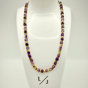 Graceful and regal, The Wisteria Amethyst Necklace is a poetic tribute to nature’s most captivating gemstone. As a signature piece in our February Birthstone Collection, it features natural 4-5mm cube-cut Amethyst beads that evoke the cascading purple blooms of a spring garden. The geometric shape offers a modern, structural beauty, while the satin-finish gold square accents provide a soft, matte glow that perfectly complements the deep violets and misty lavenders of the stone. Designed for the woman who appreciates artisan craftsmanship and effortless layering, this necklace is a timeless statement of peace and elegance.